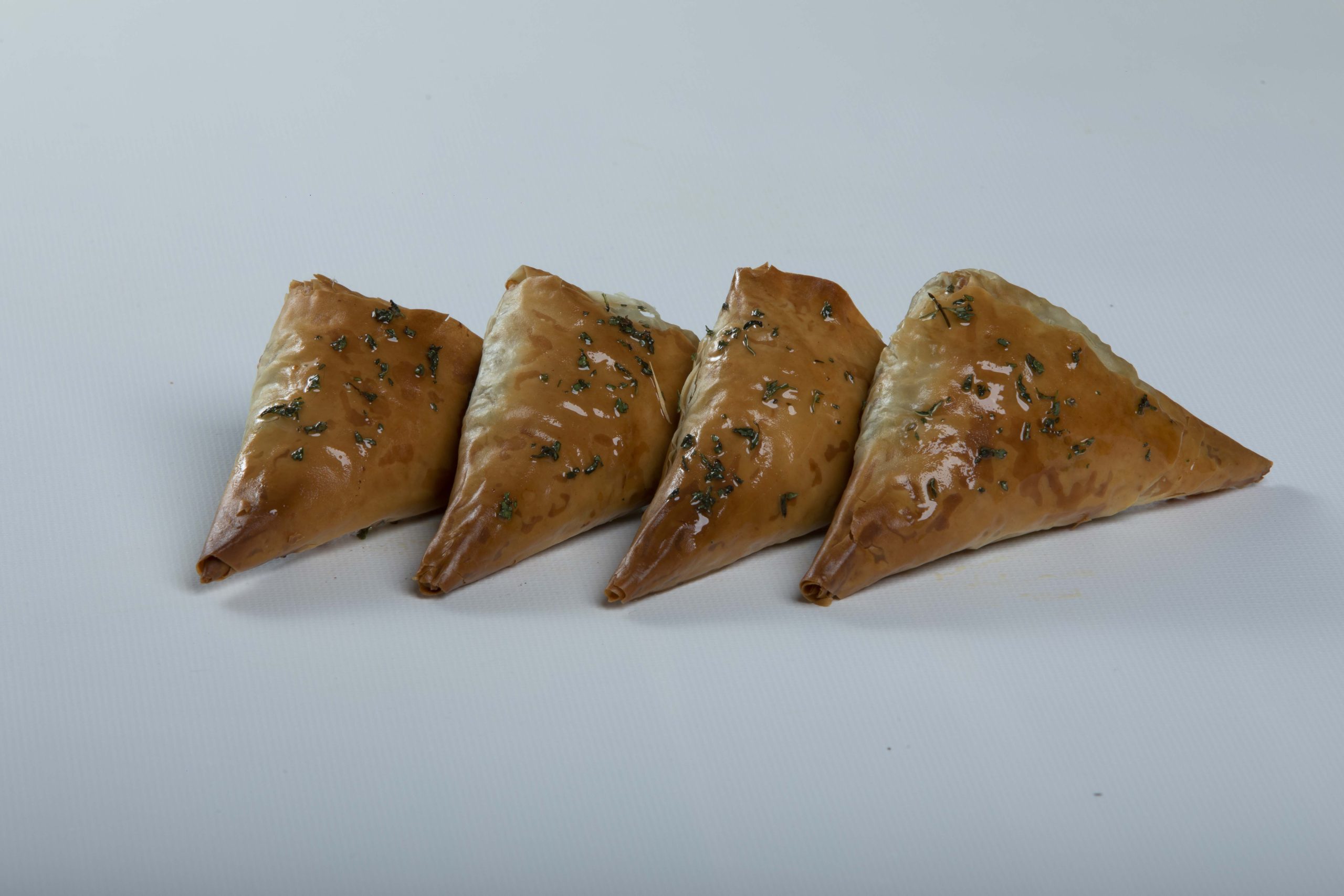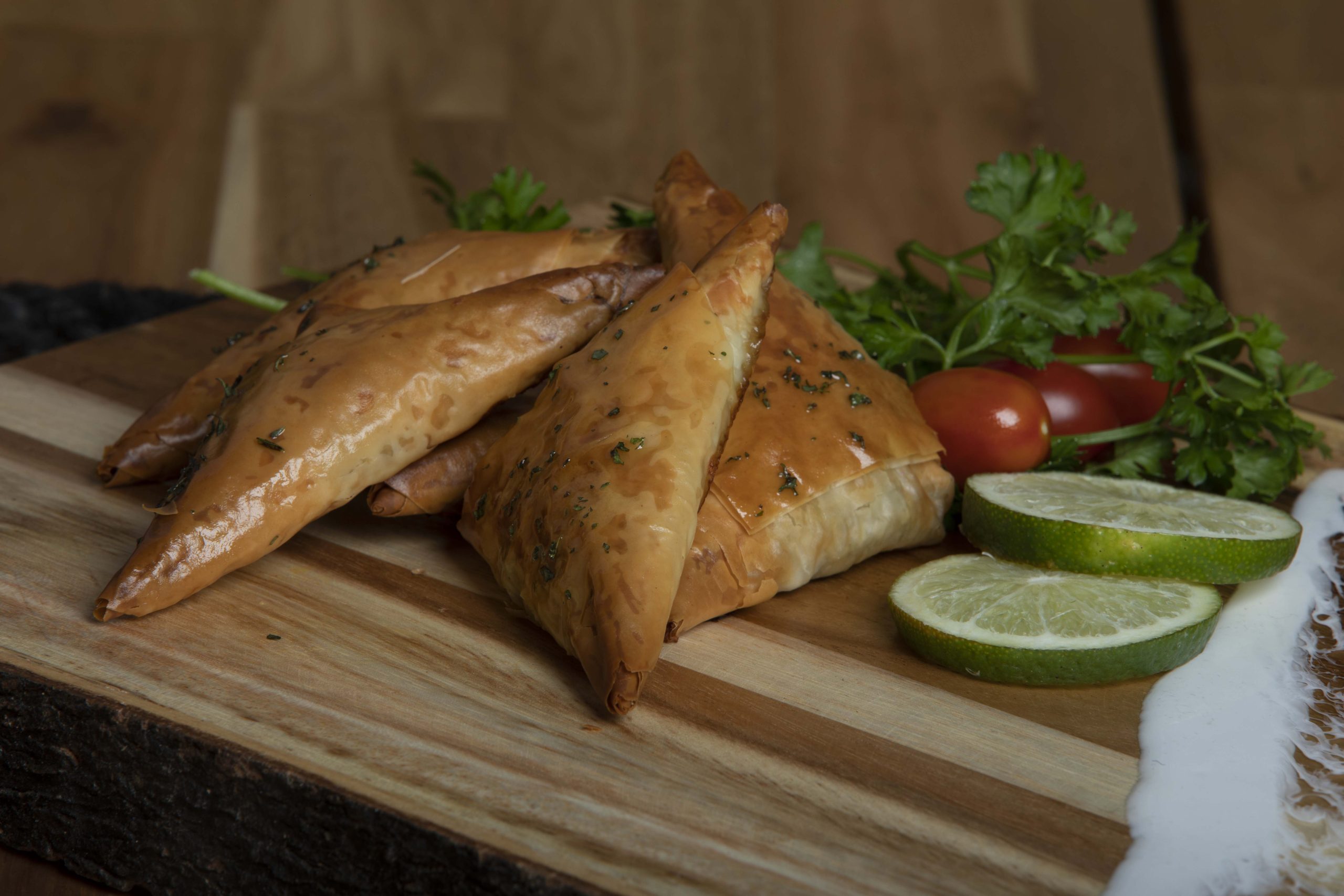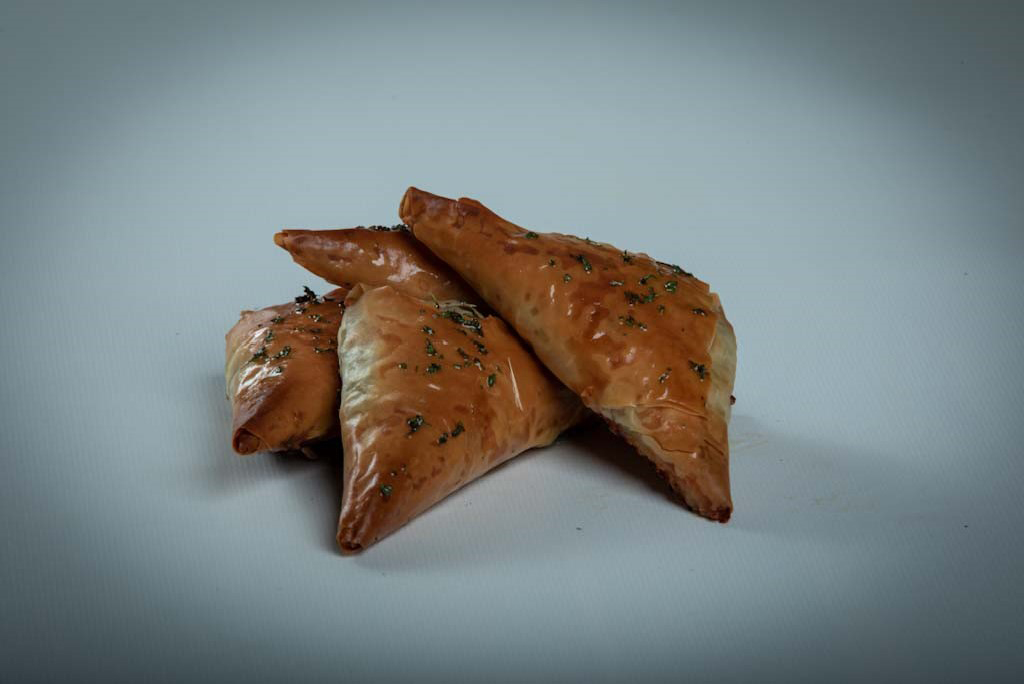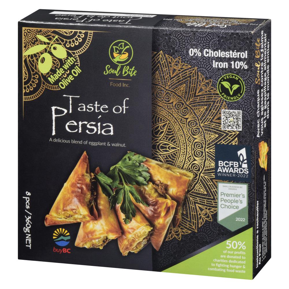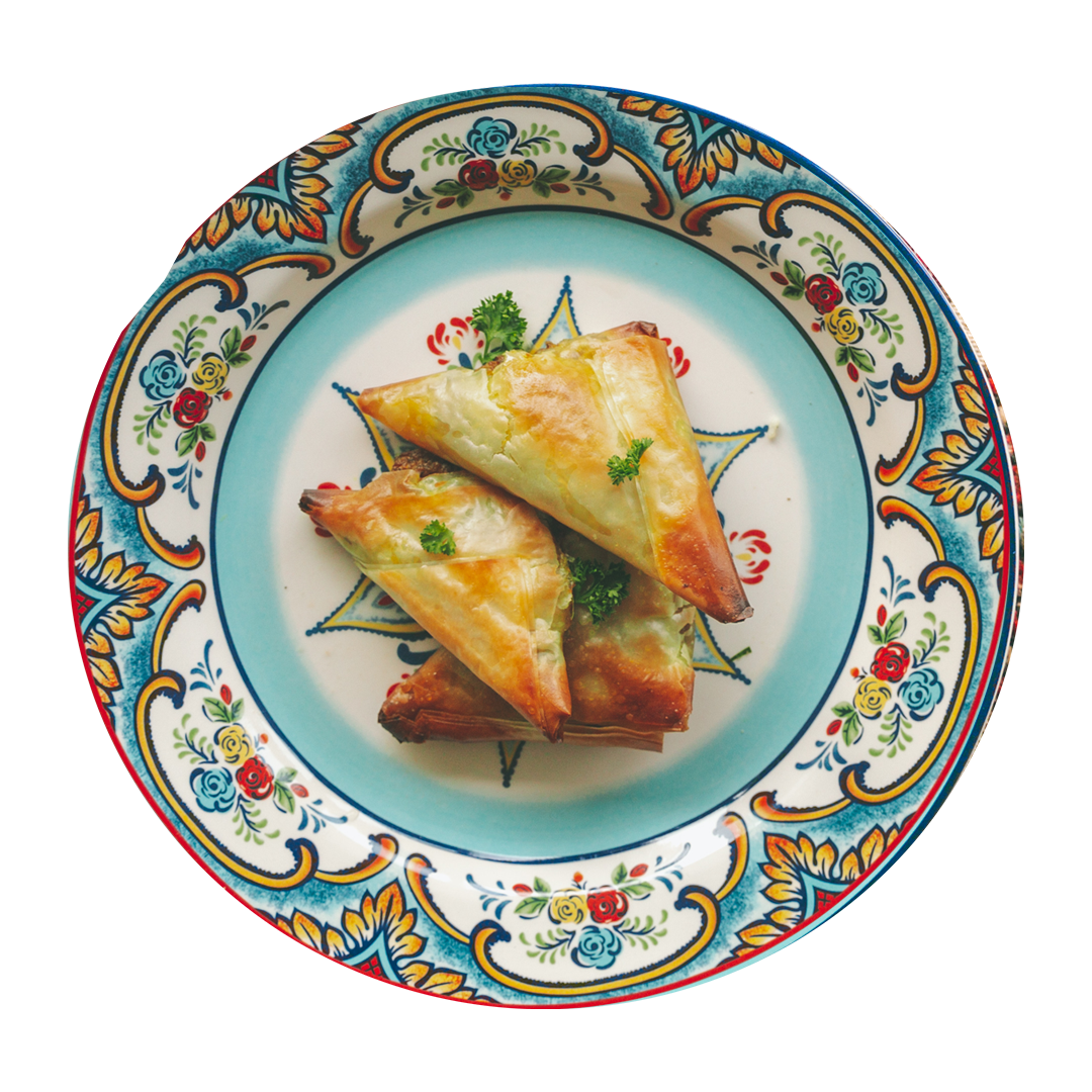 Crispy phyllo leaves wrap around a savoury mix of smoked eggplant and modern dairy-free walnut cheese that offers traditional Iranian flavour.